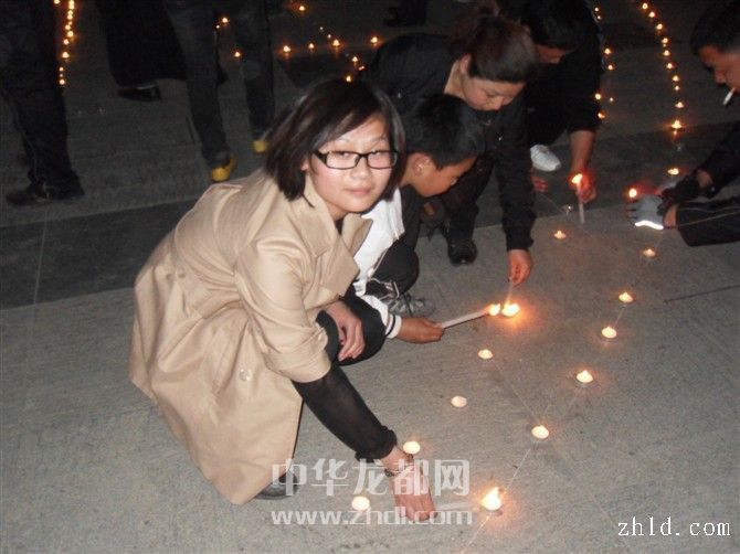 4月18日晚,在市區(qū)五一廣場,網(wǎng)友點(diǎn)燃了為玉樹災(zāi)區(qū)祈福的蠟燭。