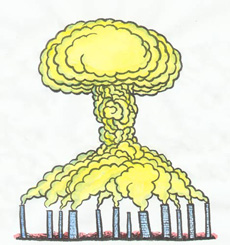 ??? 蘑菇云,戰(zhàn)爭(zhēng)和死亡的代名詞,人們說(shuō)起它無(wú)不避若蛇蝎,然而可笑的是,人類(lèi)對(duì)于空氣污染,全球變暖,這顆無(wú)形的原子彈卻是重視不足,任它漸漸發(fā)揮出威力。須知,戰(zhàn)爭(zhēng)只能毀滅一個(gè)國(guó)家或者民族,但是污染地球,導(dǎo)致的是就是全人類(lèi)的滅亡。