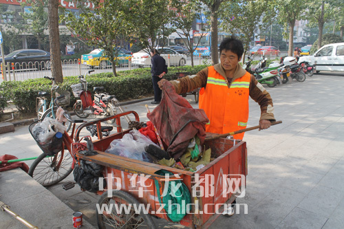 ????七一路是周口市區(qū)的窗口路段,也是環(huán)衛(wèi)工作責(zé)任最重的路段,為此,市環(huán)衛(wèi)處把李二華派到了這一路段。10月24日9時許,記者在該路段見到了正在清掃路面的環(huán)衛(wèi)工李二華。