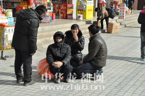 下圖:1月22日,在周口中心車站外,蔣老漢一家在等著兒子買票?! 。ㄓ浾?王亞輝 攝)