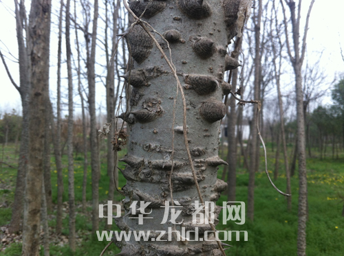 ????從高臺(tái)上走下,記者繼續(xù)行走在紅花綠樹(shù)之間,一棵渾身長(zhǎng)滿(mǎn)尖刺的大樹(shù)吸引了記者的目光。只見(jiàn)該樹(shù)有碗口粗細(xì),全身長(zhǎng)滿(mǎn)了長(zhǎng)刺,如果有人不小心碰到樹(shù)干,非得扎出血來(lái)不可?!八拿纸小涕薄?,是我國(guó)稀有樹(shù)種之一,十分罕見(jiàn)!”常年在森林公園看護(hù)樹(shù)木的馬松濤介紹,“夏天時(shí),刺楸樹(shù)上的每個(gè)刺旁邊都會(huì)長(zhǎng)出一片綠色的葉子,從遠(yuǎn)處看,整個(gè)樹(shù)干被樹(shù)葉包裹得嚴(yán)嚴(yán)實(shí)實(shí)。”
