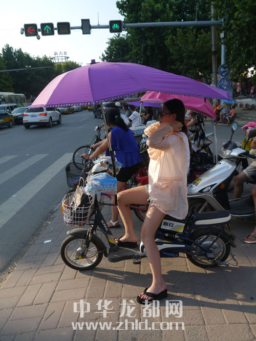 ????在市區(qū)街頭,許多市民穿上防曬衣或撐起遮陽傘。游泳池則成為市民的避暑樂園。