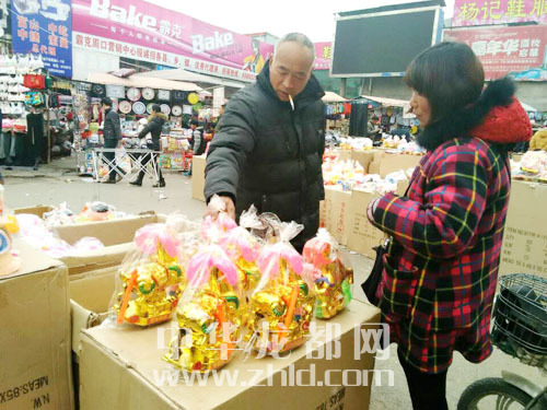 當(dāng)日12時(shí)30分許,記者在周口荷花市場(chǎng)看到,各式各樣的花燈擺在道路兩側(cè),不僅有各種卡通動(dòng)物造型的塑料花燈,還有紙質(zhì)、絨布、綢布等材質(zhì)的花燈。2015年是農(nóng)歷乙未年,“金羊賀歲”、“羊羊得意”、“喜羊羊”等卡通羊造型的花燈尤為熱銷(xiāo),售價(jià)一般在15元至30元?! ?/p>