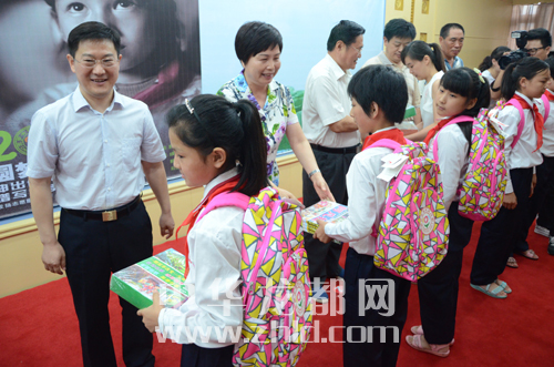 本報(bào)訊 為助力每一位貧困女孩實(shí)現(xiàn)美好的夢想,7月13日,2015年“圓夢女孩志愿行動周口行”啟動儀式在周口飯店舉行。啟動儀式上,有關(guān)領(lǐng)導(dǎo)不僅為志愿者頒發(fā)了證書,為志愿者隊(duì)伍授旗,還為太康縣圓夢女孩代表贈送了書包和圖書。