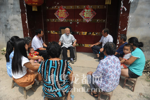 ????本報訊 全國上下慶??箲?zhàn)勝利70周年之際,96歲的鄲城籍抗戰(zhàn)老兵朱好德每天都關注各大電視臺播放的抗戰(zhàn)特別節(jié)目。由于1938年正月的黃河保衛(wèi)戰(zhàn)是老人家打得最過癮、打得最得意的一場戰(zhàn)役,8月26日,依照朱好德的意愿,朱家上下十幾口歡聚一堂,聽他講述炮火紛飛年代中華兒女血灑疆場殺日寇的故事(如圖)。