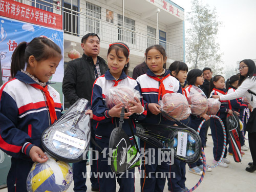 ????11月3日,河南“公益體彩 快樂操場(chǎng)”公益活動(dòng)走進(jìn)東新區(qū)石莊小學(xué)(如圖)和太康縣毛莊小學(xué),工作人員為兩所學(xué)校送去價(jià)值2.4萬(wàn)元的體育器材,并帶領(lǐng)孩子們上了一堂生動(dòng)的體育課。