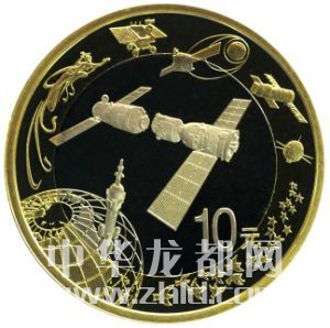 據(jù)了解,此次發(fā)行的中國航天普通紀(jì)念幣面額為10元,直徑為27毫米,材質(zhì)為雙色銅合金,正面主景圖案為國徽圖案,其上方刊“中華人民共和國”國名,下方刊年號“2015”。中國航天普通紀(jì)念幣背面主景圖案為神舟九號近軌對接航天器圖案,背景外環(huán)上方自右起分別為東方紅一號衛(wèi)星、神舟五號、嫦娥一號、探月月球車、代表中國古代飛天夢的民間圖騰圖案,左下方為抽象的地球和長2F運(yùn)載火箭圖案,右下方為由和平鴿演變成的五角星和星星圖案。