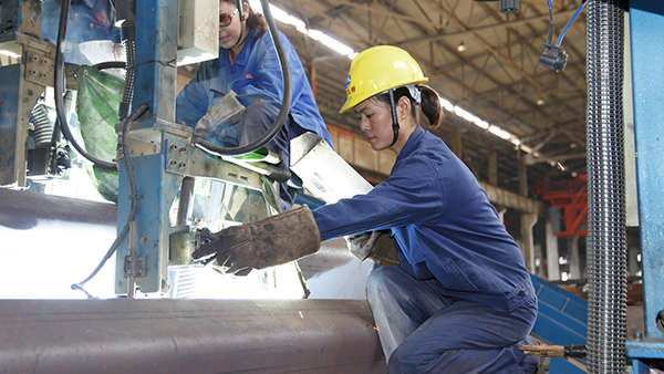 “雖然高溫使我們像‘蒸桑拿’一樣全身汗?jié)瘢珵榱吮WC焊接質(zhì)量,我們必須堅(jiān)持下來(lái),看著焊接好的工程,流的汗,值了!”王中美說(shuō)道。