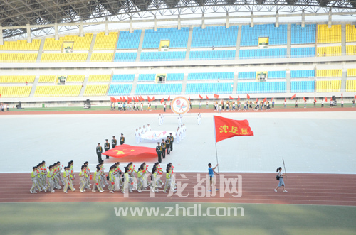 ????9月19日16時許,周口晚報記者在市三運(yùn)會開幕式整場彩排現(xiàn)場看到,伴隨著主持人宣布彩排開始,國旗、會旗和會徽方陣率先入場,緊隨其后的是來自各縣市區(qū)的97支代表隊(duì)方陣(小圖)。當(dāng)入場式結(jié)束所有參與人員離場后,市三運(yùn)會開幕式文藝演出拉開帷幕。據(jù)了解,文藝演出共分《印象周口》《荷韻悠長》《難以忘槐》《崛起之路》《揚(yáng)帆遠(yuǎn)航》五大篇章。“我們參演的有舞龍?zhí)珮O、龍旗、古箏演奏等6個節(jié)目?!敝芸谖牟袑W(xué)相關(guān)負(fù)責(zé)人趙志偉說,他們學(xué)校共有540人參加市三運(yùn)會開幕式文藝演出,表演的節(jié)目穿插在五大篇章之中。周口晚報記者了解到,除周口文昌中學(xué)外,參加開幕式文藝演出的還有周口幼兒師范學(xué)院、周口職業(yè)技術(shù)學(xué)院衛(wèi)生學(xué)院、周口市自行車協(xié)會等多家單位。