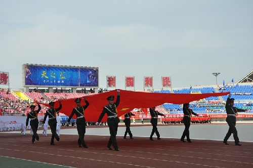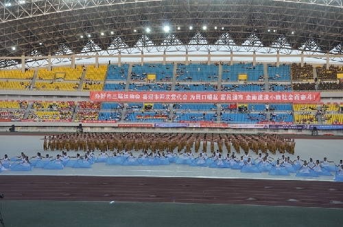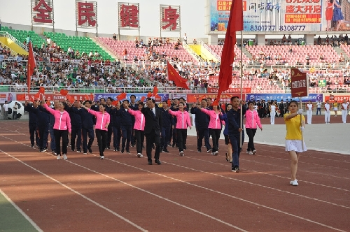 ????當(dāng)日16時(shí),國旗方陣、會(huì)旗方陣、彩旗隊(duì)、裁判員、運(yùn)動(dòng)員依次入場(chǎng),一個(gè)個(gè)意氣風(fēng)發(fā)的團(tuán)隊(duì)引來現(xiàn)場(chǎng)觀眾陣陣掌聲和歡呼聲:周口川匯區(qū)代表團(tuán)首先入場(chǎng),他們步伐矯健,英姿勃發(fā);市委辦公室代表團(tuán)精神抖擻,意氣風(fēng)發(fā);市委宣傳部代表團(tuán)邁著矯健的步伐走向主席臺(tái)……