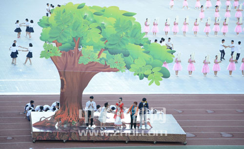 運(yùn)動(dòng)員抬著會(huì)徽入場(chǎng)