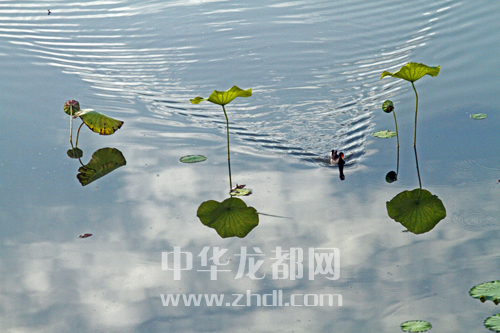 ????此時(shí)的荷塘,呈現(xiàn)出一派秋的氣象。雖然荷葉已經(jīng)卷曲枯萎,蓮蓬也已枯黃,扭曲的荷梗穿插其間,繁華褪盡,滿池清麗,卻呈現(xiàn)出一番別樣的秋韻之美。