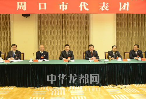 謝伏瞻同志和周口代表團成員一起討論省委工作報告。???記者 王映 攝