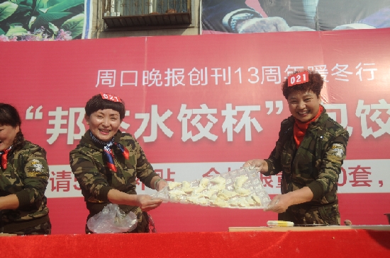 ????12月4日,周口晚報創(chuàng)刊13周年暖冬行大型公益活動——包餃子大賽啟動第一場分站賽,69組138名選手激烈角逐后,6組選手獲得分站賽一、二、三等獎。晚報記者 朱海龍 攝