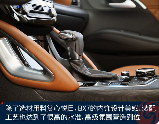 BX7的隔音材料總體夠足料,光在車門上就鋪設(shè)了兩個(gè)整圈+窗框上多半圈的密封隔音膠條,在這一價(jià)位的車型里絕對(duì)厚道。底盤的厚重感剛才提到了,高速行駛時(shí)無(wú)論風(fēng)噪還是輪胎噪音,抑或發(fā)動(dòng)機(jī)噪音都挺有節(jié)制的,稍微來(lái)點(diǎn)音樂(lè)就能掩蓋掉,因此這個(gè)車跑高速公路是讓人心情愉悅的,車內(nèi)安靜,而且非常平穩(wěn)。