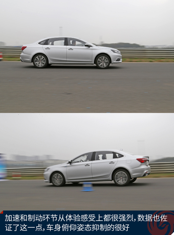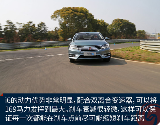 在動(dòng)力方面,榮威i6搭載了上汽“藍(lán)芯”SGE 20T發(fā)動(dòng)機(jī),采用缸內(nèi)中置直噴渦輪增壓、高效氣門配氣機(jī)構(gòu)等國際領(lǐng)先技術(shù),配合TST 7速雙離合變速器,榮威i6最大功率169馬力,比朗逸、軒逸和領(lǐng)動(dòng)分別高出了59馬力、43馬力、39馬力。而實(shí)際測試中也證實(shí)了這一點(diǎn),榮威i6在加速和剎車方面確實(shí)領(lǐng)先于競品車型。7.88秒的0-100km/h的加速成績確實(shí)讓人大吃一驚,榮威i6表現(xiàn)出了極高的運(yùn)動(dòng)化調(diào)教。剎車方面,榮威i6也表現(xiàn)相當(dāng)出色,36.59米的剎車距離,可以跟一些性能車相提并論。300mm的通風(fēng)剎車片功不可沒,整個(gè)制動(dòng)過程有力平穩(wěn),車身懸掛對于點(diǎn)頭的抑制也很到位。