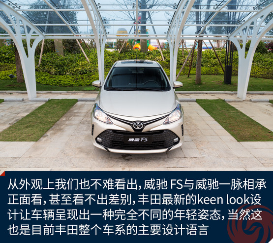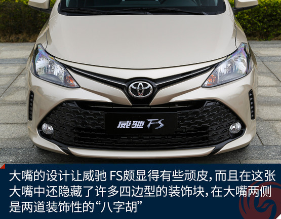 從外觀上我們也不難看出,威馳 FS與威馳一脈相承,正面看,甚至看不出兩車(chē)的差別,豐田最新的keen look設(shè)計(jì)讓車(chē)輛呈現(xiàn)出一種完全不同的年輕姿態(tài),當(dāng)然這也是目前豐田整個(gè)車(chē)系的主要設(shè)計(jì)語(yǔ)言,就是要讓車(chē)輛更顯年輕運(yùn)動(dòng)。大嘴的設(shè)計(jì)讓威馳 FS頗顯得有些頑皮,而且在這張大嘴中還隱藏了許多四邊型的裝飾塊,在大嘴兩側(cè)是兩道裝飾性的“八字胡”,除此之外是一雙大大的眼睛,這一副調(diào)皮可愛(ài)的模樣,相信不少年輕人都會(huì)喜歡。