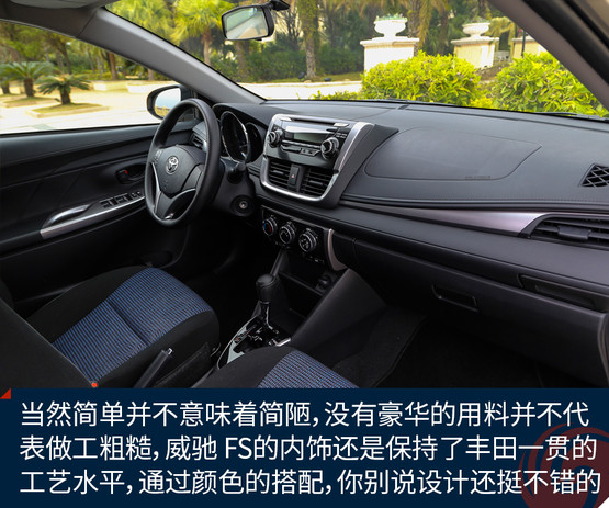 當(dāng)然簡(jiǎn)單并不意味著簡(jiǎn)陋,沒(méi)有豪華的用料并不代表做工粗糙,威馳 FS的內(nèi)飾還是保持了豐田一貫的工藝水平,并且通過(guò)黑色與銀色相互的搭配,你別說(shuō),這個(gè)內(nèi)飾的設(shè)計(jì)還挺不錯(cuò)的。