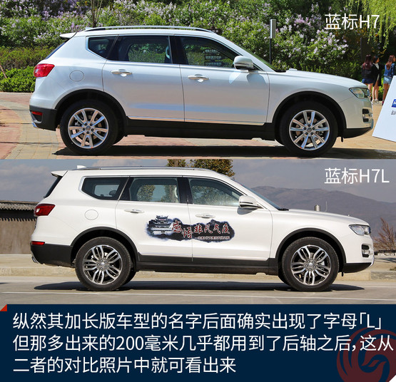 提到加長,我腦子中的第一反應(yīng)是軸距加長幾十甚至上百毫米,然而,哈弗藍(lán)標(biāo)H7L并不是這樣。縱然其加長版車型的名字后面確實出現(xiàn)了字母「L」,但那多出來的200毫米幾乎都用到了后軸之后,這從二者的對比照片中就可看出來。