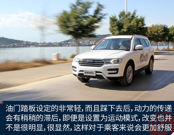既然是7座車型,藍(lán)標(biāo)H7L在調(diào)校方面也更加注重舒適,這一點從油門踏板可以很明顯的感覺到。油門踏板設(shè)定的非常輕,而且踩下去后,動力的傳遞會有稍稍的滯后,即便是設(shè)置為運動模式,改變也并不是很明顯,很顯然,這樣對于乘客來說會更加舒服。相比于油門踏板,剎車踏板則力度適中且比較線性。