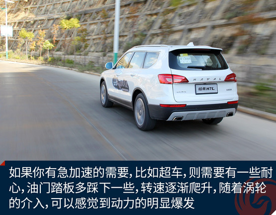 如果你有急加速的需要,比如超車,則需要有一些耐心,油門踏板多踩下一些,轉(zhuǎn)速逐漸爬升,隨著渦輪的介入,可以感覺到動力的明顯爆發(fā)。