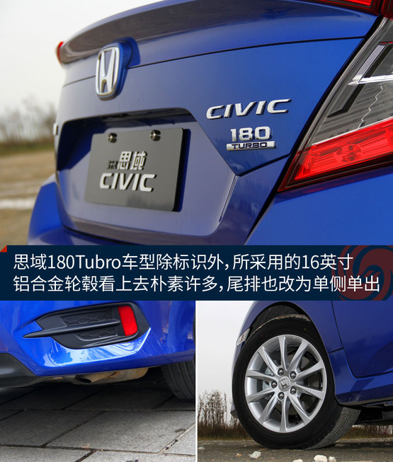 隨著思鉑?;靹榆囆偷耐瞥觯@次走入門路線的思域1.0T也來打了個醬油。跟之前的1.5T車型相比,外形基本保持一致。鑒于其更入門的定位,輪轂的樣式看起來沒那么精致和動感了,尾排改為了單側(cè)單出的設計,車尾的動力標識也有之前的“220TURBO”改為“180TURBO”。