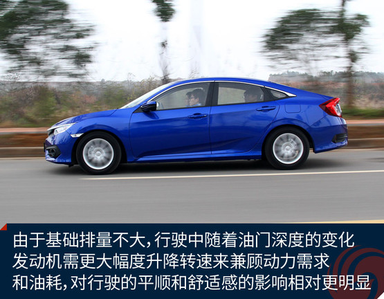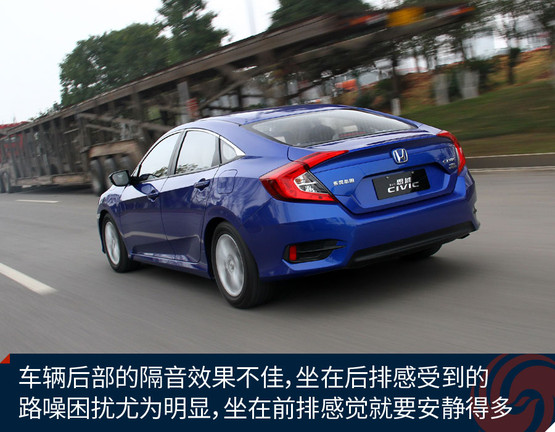 思域的定位一直偏向運動,這一代車型自然不會放棄這一特色,底盤的扎實感、懸掛偏硬朗的設定都營造了同級別里相對出色的操控感受。不過懸掛系統(tǒng)在韌性方面相對薄弱,路感太強烈,鋪裝路面上細微的不平整所帶來的振動也比較清晰地傳遞到車內(nèi)。座椅的靠背包裹感還不錯,填充也比較得體,很舒服,但坐墊偏硬,因此行駛中車輛整體對振動的抑制能力欠佳,很大程度上影響了舒適性。