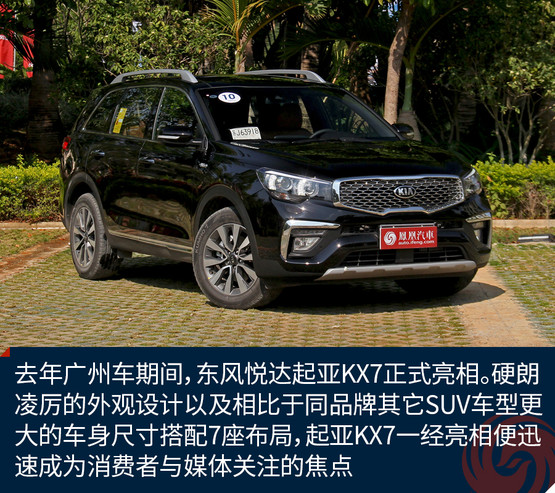 ?眾所周知,目前東風(fēng)悅達(dá)起亞在國內(nèi)SUV市場(chǎng)已經(jīng)擁有智跑、KX3、KX5這三款SUV車型,但均是傳統(tǒng)的5座車型。面對(duì)迅速擴(kuò)張的7座SUV市場(chǎng),東風(fēng)悅達(dá)起亞自然不會(huì)放過。在去年年底的廣州車展上,東風(fēng)悅達(dá)起亞全新旗艦SUV——KX7正式亮相。盡管當(dāng)時(shí)新車內(nèi)部設(shè)計(jì)和配置信息并未公布,但憑借其硬朗、凌厲的外觀設(shè)計(jì)以及相比于同品牌其它SUV車型更大的車身尺寸搭配7座布局,起亞KX7一經(jīng)亮相便迅速成為消費(fèi)者與媒體關(guān)注的焦點(diǎn)。