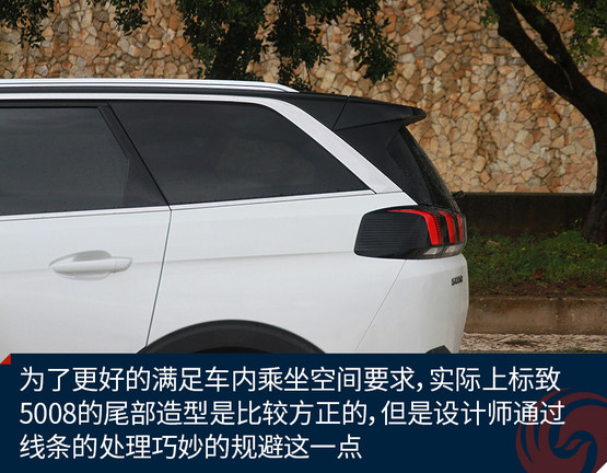 為了更好的滿足車(chē)內(nèi)乘坐空間要求,實(shí)際上標(biāo)致5008的尾部造型是比較方正的,但是設(shè)計(jì)師通過(guò)線條的處理巧妙的規(guī)避這一點(diǎn)。側(cè)窗鍍鉻裝飾在尾部快速下滑與尾燈相連接,上面后窗的部分則用黑色處理,使得標(biāo)致5008的視覺(jué)效果仍然充滿動(dòng)感,同時(shí)還保留了第三排空間的實(shí)用性。
