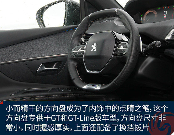 小而精干的方向盤(pán)成為了內(nèi)飾中的點(diǎn)睛之筆,這個(gè)方向盤(pán)專供于GT和GT-Line版車(chē)型,方向盤(pán)尺寸非常小,同時(shí)握感厚實(shí),上面還配備了換擋撥片,單看方向盤(pán)根本想不到這出于是一款7座中型SUV。