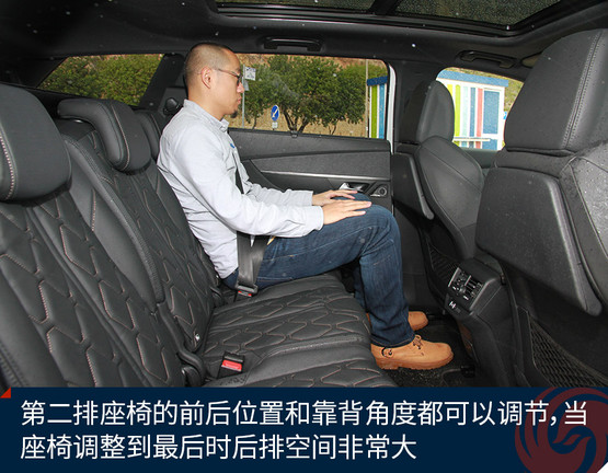第二排座椅的前后位置和靠背角度都可以調(diào)節(jié),當(dāng)座椅調(diào)整到最后時(shí)后排空間非常大,同時(shí)標(biāo)致5008還為第二排乘客提供了獨(dú)立空調(diào)、小桌板和車(chē)頂上的全景天窗,所以當(dāng)?shù)谌挪恍枰藭r(shí),標(biāo)致5008的第二排是一個(gè)乘客休息娛樂(lè)的好地方。
