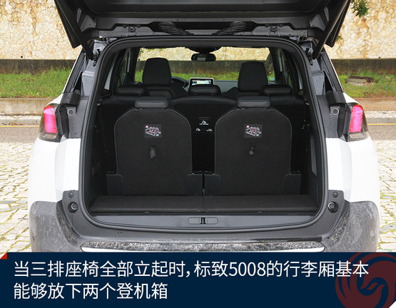 標(biāo)致5008提供了三排座椅還有另外一個(gè)顯著的好處是,可以豐富行李廂的使用方式。通過(guò)實(shí)際體驗(yàn)可以發(fā)現(xiàn),當(dāng)三排座椅全部立起時(shí),標(biāo)致5008的行李廂基本能夠放下兩個(gè)登機(jī)箱,但如果第三排不需要坐人時(shí),可以將第三排完全放平(甚至不會(huì)發(fā)現(xiàn)有第三排的存在),此時(shí)行李廂放兩個(gè)大號(hào)托運(yùn)箱應(yīng)該也是沒(méi)有問(wèn)題的。