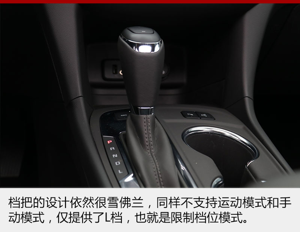 有一點(diǎn)我不是很明白,雪佛蘭最新的設(shè)計理念已經(jīng)開始向運(yùn)動發(fā)展,但是它旗下的車型都不帶有運(yùn)動模式和手動換擋模式,僅僅是提供了L檔,也就是所謂的限位檔,通過檔把上方的加減按鍵可以手動使變速箱限制在相當(dāng)?shù)臋n位上,D檔模式下此按鍵無效。
