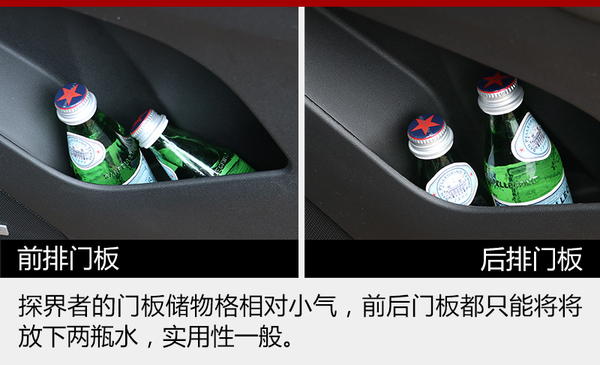 探界者作為一臺中型SUV在儲物空間的表現(xiàn)其實(shí)有些平庸,不算多的儲物格除了扶手箱以外基本沒有亮點(diǎn),而且門板的儲物格也比較不實(shí)用;后備箱的空間倒是值得肯定,無論是座椅放倒后的平整和可擴(kuò)展性,還是蓋板下方的小儲物格,都很靠譜。