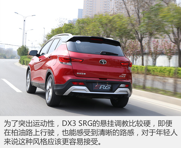東南DX3 SRG很明顯是為85后年輕群體打造的一款車,雖然它的最終用戶不一定是年輕人,但不可否認(rèn)東南DX3 SRG是同級(jí)中顏值頗高的一員,無(wú)論從哪個(gè)角度都足夠讓人驚艷;試駕活動(dòng)中全新的動(dòng)力組合非常出色,尤其是底盤(pán)調(diào)教給我留下了深刻的印象,這對(duì)于年輕消費(fèi)者來(lái)說(shuō)無(wú)疑是個(gè)利好的期待,作為10萬(wàn)元級(jí)別SUV,DX3 SRG有很強(qiáng)的實(shí)力與競(jìng)品爭(zhēng)奪市場(chǎng)。(圖/文 張嘉文)