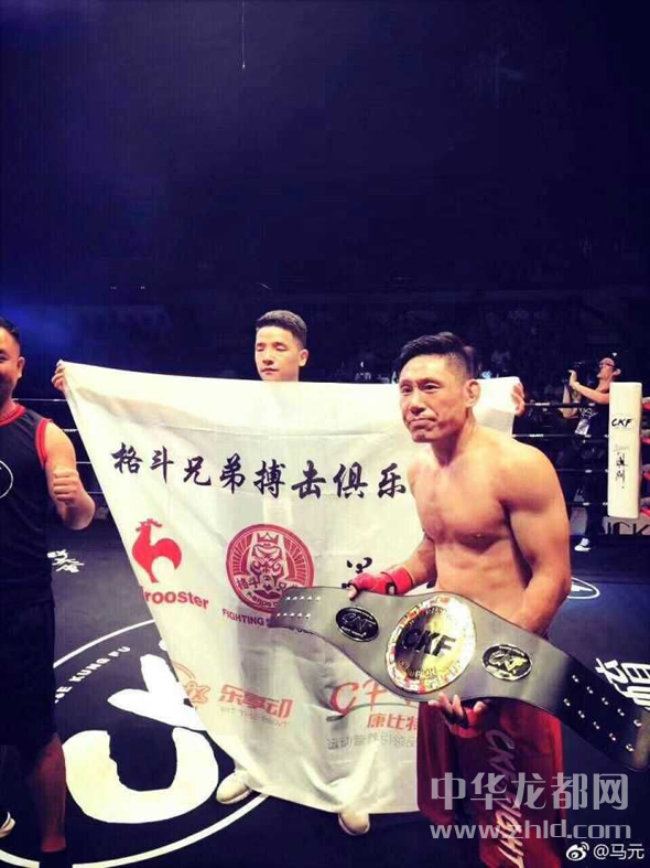 ??? 當(dāng)日,國(guó)內(nèi)格斗圈有名的姚紅剛、姚志奎兄弟第二次聯(lián)袂出陣CKF國(guó)際搏擊澳門站比賽,分別爭(zhēng)奪66公斤、61公斤洲際拳王金腰帶。比賽中,姚紅剛面對(duì)比自己年輕近十歲、高出自己10厘米的對(duì)手,表現(xiàn)沉著冷靜,開局不久抓住機(jī)會(huì)成功抱倒對(duì)手,形成側(cè)控位,在對(duì)手起橋逃脫的空擋瞬間轉(zhuǎn)換為騎乘位,此后對(duì)手拼盡全力雙手搭扣防止姚紅剛的地面砸拳,但為時(shí)已晚,雨點(diǎn)般的拳頭落在了對(duì)手身上,對(duì)手被迫放棄比賽。第一回合姚紅剛tko對(duì)手獲勝,獲得個(gè)人第二條洲際綜合格斗金腰帶!
