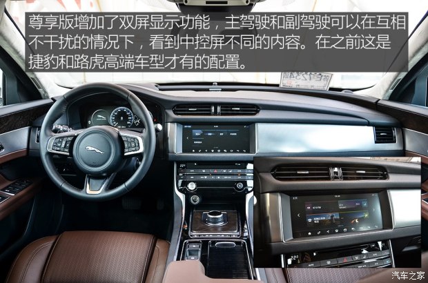 ????18款車型在外觀和內(nèi)飾上并沒有明顯變化,這在之前的圖文實(shí)拍中進(jìn)行了詳細(xì)解讀>點(diǎn)擊鏈接查看<。配置上增加了雙屏顯示功能,主駕駛和副駕駛可以在不互相干擾的情況下,看到中控屏不同的內(nèi)容。在之前這是捷豹和路虎高端車型才有的配置,如今已經(jīng)普及到XFL上面。