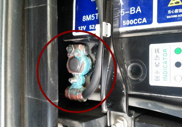 ????秋季時(shí)蓄電池的負(fù)極接線處有可能出現(xiàn)綠色類似晶狀的氧化物,根據(jù)4S店的說法是蓄電池的過度使用或者電池液外露導(dǎo)致的氧化,有些人甚至說這是正常現(xiàn)象。如果未發(fā)現(xiàn)對(duì)蓄電池的正常使用產(chǎn)生影響,發(fā)現(xiàn)這些氧化物之后用開水沖一下即可去除,沖不掉就把它刮掉,同時(shí)抹上一點(diǎn)印度神油,確保蓄電池的堅(jiān)挺使用。至于這個(gè)印度神油,可以是黃油或者機(jī)油,抹上一點(diǎn)可以防止氧化。