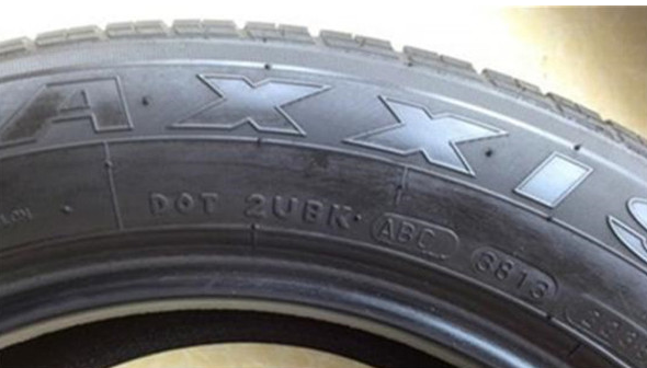 ????一般在輪胎的外側(cè)都有一串數(shù)字和字母,如下圖所示的數(shù)字“3813”,就是輪胎生產(chǎn)的日期,后兩位代表年份,也就是2013年,38表示輪胎是在13年的第38個周期生產(chǎn)的,也就是266天,共計8個月,所以輪胎是9分份生產(chǎn)的。