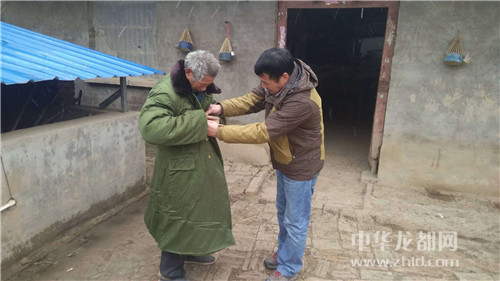“前一段時(shí)間你給我們送的新被子還沒舍得蓋呢,這剛下大雪,又給我們送來(lái)了棉大衣。外邊太冷,快到屋里坐,快到屋里坐。”鄲城縣發(fā)改委主任孟憲紅把棉大衣挨家送到雙樓鄉(xiāng)張廟村貧困老人家中,張老漢感激不已,連忙讓座。
