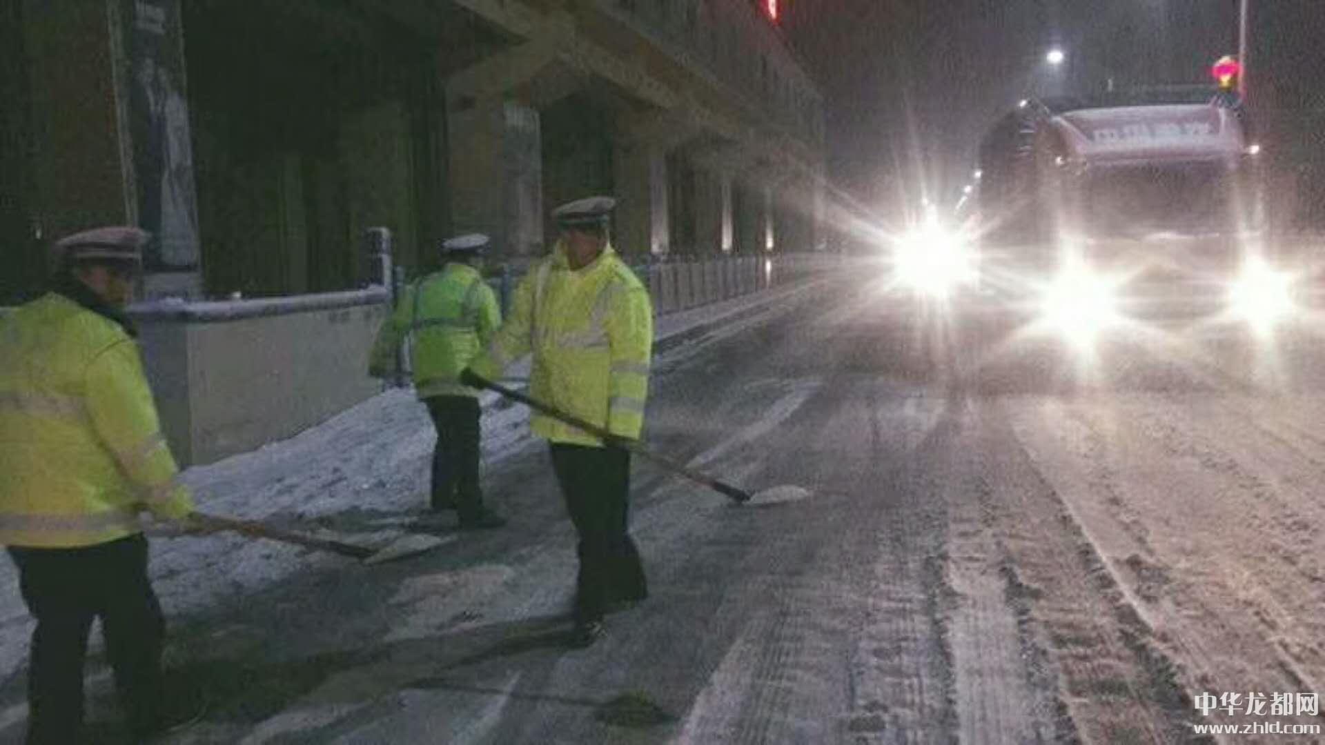 中華龍都網訊(周口報業(yè)全媒體記者  韋偉  通訊員  王佳佳 )“加派警力到各個橋梁涵洞,持續(xù)清掃路面,防止結冰!”1月4日下午六點,沈丘縣城仍是白雪飄飛,天還沒黑,一道加急令,讓忙碌了一天一夜的交警們打起了十二分的精神,繼續(xù)全員上路,不停不歇地進行掃雪及撒鹽除冰工作。