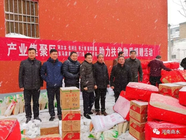“我們將一如既往地關(guān)注和支持精準(zhǔn)扶貧工作,用實(shí)際行動(dòng)展現(xiàn)企業(yè)家致富不忘本、積極履行社會(huì)責(zé)任的良好形象?!?月4日上午,河南阿爾本制衣有限公司等企業(yè)負(fù)責(zé)人深入到張莊鄉(xiāng)大姜樓、雙廟、李寨、河灣等村的困難戶家中,為他們送去慰問金以及米面糧油、棉被等過冬物質(zhì)。大雪來臨之后,全縣越來越多的企業(yè)加入到脫貧攻堅(jiān)送溫暖活動(dòng)中來,周口市佳利達(dá)紡織有限公司、河南香之緣農(nóng)業(yè)發(fā)展有限公司、河南省南洋防爆電機(jī)有限公司、河南東馬家居有限公司、河南豪鋁門業(yè)有限公司、河南千王釬具有限責(zé)任公司等更是體現(xiàn)出大愛無邊的擔(dān)當(dāng)意識(shí)、責(zé)任意識(shí),用實(shí)際行動(dòng)為貧困家庭送去一股股暖流。 風(fēng)雪阻擋不住商水脫貧攻堅(jiān)的決心和腳步。據(jù)不完全統(tǒng)計(jì),元旦以來,商水縣有3000多名縣鄉(xiāng)干部、駐村隊(duì)員、愛心企業(yè)家參與到扶貧攻堅(jiān)送溫暖活動(dòng)中來。新一輪的“大慰問、大宣傳、大落實(shí)”活動(dòng)正在展來,更多的貧困家庭將切實(shí)感受到黨和政府的溫暖。