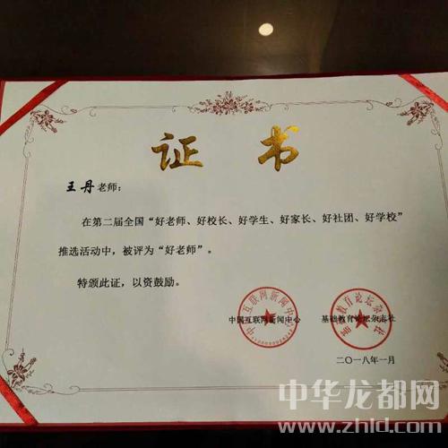 中華龍都網(wǎng)訊(周口報(bào)業(yè)全媒體記者 付永奇)記者昨日獲悉,近日在由中國(guó)基礎(chǔ)教育論壇雜志社和中國(guó)互聯(lián)網(wǎng)新聞中心主辦的“六好”推選活動(dòng)中,商水縣教師王丹獲得“好老師”的光榮稱號(hào),獲此殊榮的全國(guó)僅有100名教師,王丹是周口市唯一一位獲此殊榮的教師。