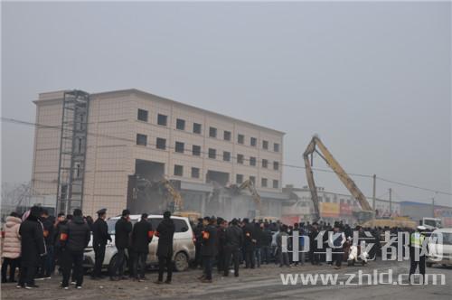 該建筑位于S219省道西側的基本農(nóng)田區(qū),占地面積3畝多,建筑面積3600多平米,五層樓房。2017年3月動工建設,12月建成并完成裝修工作。期間,縣國土資源局多次對其下發(fā)停建通知書、行政處罰告知書等予以制止,但業(yè)主王某不聽勸告,繼續(xù)進行違法建設。2018年1月3日,縣國土資源局向縣法院申請依法強制執(zhí)行,8日縣政府發(fā)布依法拆除公告。16日上午,商水縣委、縣政府組織由縣征地拆遷領導小組辦公室、縣委宣傳部、政府辦、公安、檢察院、法院、國土、規(guī)劃、城管、信訪、電業(yè)、消防、縣醫(yī)院、譚莊鎮(zhèn)政府、大武鄉(xiāng)政府等相關單位近千人參加的執(zhí)法隊伍對該建筑實施依法拆除,譚莊鎮(zhèn)各行政村主要負責人和千余名群眾目睹了依法拆除全過程。