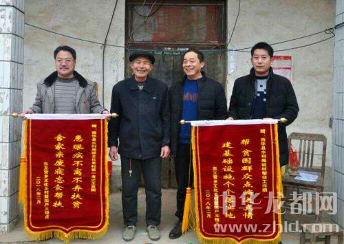 中華龍都網(wǎng)訊(周口報(bào)業(yè)全媒體記者 高洪馳)2月9日,西華縣水利局局長與駐村幫扶隊(duì)員一起,前往水利局幫扶村東王營鄉(xiāng)王化本村看望慰問貧困戶,為他們送去年貨和新春問侯。當(dāng)他們來到貧困戶王恒占家中慰問時(shí),王恒占將事先準(zhǔn)備好的上寫有“幫貧困群眾點(diǎn)滴送真情、建基礎(chǔ)設(shè)施個(gè)個(gè)落實(shí)地”“患眼疾不離不棄扶貧、舍家親廢寢忘食幫扶”的兩面錦旗,送到王新長和駐村第一書記王良弼手里,感謝縣水利局和幫扶隊(duì)員在脫貧攻堅(jiān)工作中對王化本村的傾心幫扶。