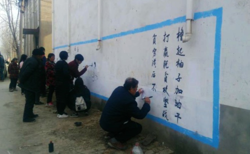 中華龍都網(wǎng)訊(周口報業(yè)全媒體記者 高洪馳 通訊員徐濤)為進一步增強群眾脫貧致富的信心和決心,鄲城縣委、縣政府依托本縣“中國書法之鄉(xiāng)”的優(yōu)勢,緊扣“脫貧致富奔小康”主題,在全縣23個鄉(xiāng)鎮(zhèn)(辦事處)1228個自然村組織舉辦脫貧攻堅知識萬人書畫文化下鄉(xiāng)行活動。自活動開展以來,近萬人次的書畫家已書寫脫貧攻堅作品36840幅,每村墻體書畫作品30幅左右,義寫春聯(lián)4萬余幅,受到了廣大群眾的歡迎。