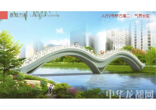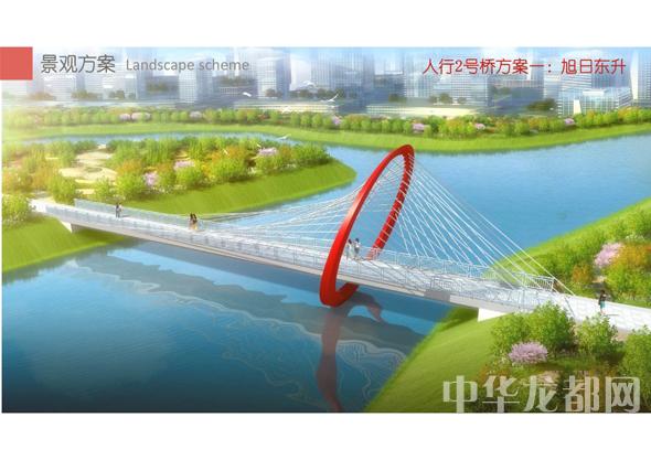 人行2號(hào)橋的設(shè)計(jì)方案有兩套,分別為“旭日東升”和“氣貫長(zhǎng)虹”?!靶袢諙|升”為圓形塔懸索橋。記者從效果圖中看到,該橋的橋塔為圓形,猶如一輪東升的太陽(yáng),象征著城鄉(xiāng)一體化示范區(qū)蓬勃發(fā)展的未來(lái)?!皻庳為L(zhǎng)虹”為中承式系桿拱橋。該方案結(jié)合中國(guó)玉帶橋的古典元素、抽象古典幾何美學(xué),采用現(xiàn)代的設(shè)計(jì)手法,創(chuàng)作出現(xiàn)代感和中國(guó)傳統(tǒng)橋梁元素雜糅的橋梁設(shè)計(jì)。