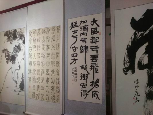 本次書畫展由中共沈丘縣委宣傳部、縣文聯(lián)主辦,縣書協(xié)、縣美協(xié)承辦,展出我縣書畫家創(chuàng)作的書畫精品一百多幅。書法作品五體俱全,其中范曉公、高望、李少華等人的行草書;陳國旗的小篆;李中魁、劉景的隸書;趙東明、李勇的楷書各具風采,引人注目。國畫作品花鳥、人物、山水皆有,青年畫家吳帆的《鐘馗圖》孔武有力、王志全的《翠竹》》筆墨精到、女畫家海納的《山水》氣勢磅礴,老畫家王蒞泉的《貓蝶嬉戲》功力深厚。