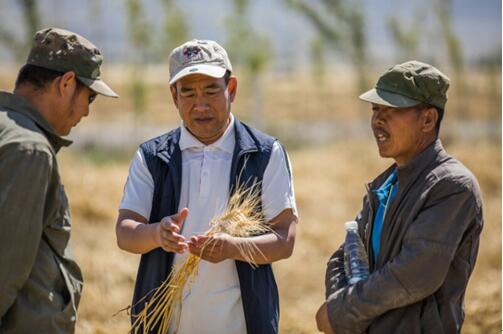 2017年9月是新疆哈密的小麥收割季,全國人大代表、治土人黨永富在田間考察化肥減量、農(nóng)業(yè)提質(zhì)的實際效果。