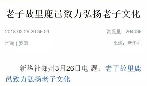 中華龍都網訊(周口報業(yè)全媒體記者 李瑞才 文/圖)再過幾天(本周六),就是老子誕辰2589周年了。為進一步推動老子文化與縣域建設深度融合,把老子文化這張牌打響擦亮,2016年年初鹿邑縣恢復舉辦了“老子生日拜典暨河南省非物質文化遺產展演系列活動”這一文化盛事,使得老子故里的文化感染力和影響力不斷增強。今年3月31日至4月30日(農歷二月十五日至三月十五日),鹿邑將繼續(xù)在縣城和太清宮景區(qū)舉辦2018年老子文化系列活動。連日來,新華社、人民網、光明網等中央主流媒體再次聚焦鹿邑,紛紛為老子故里這一文化旅游產業(yè)發(fā)展盛事宣傳造勢……